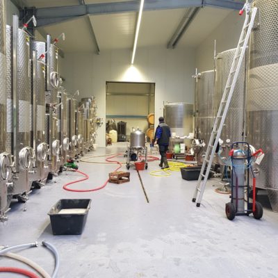 Die erste Arbeit in unserer neuen Weinhalle ist getan. Die Weine sind gefiltert und lagern nun im Edelstahltank oder im Holzfass.